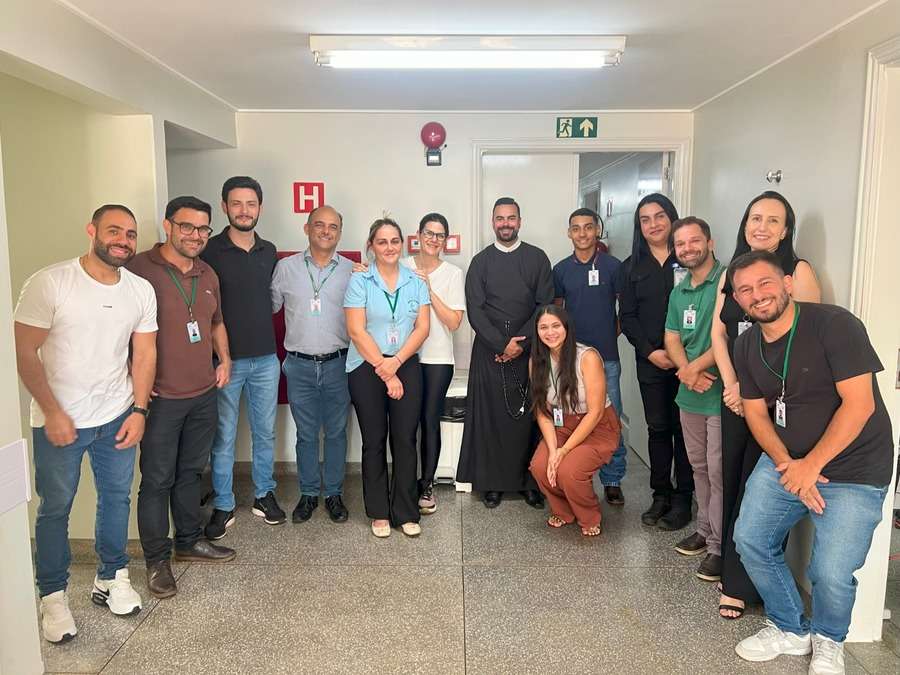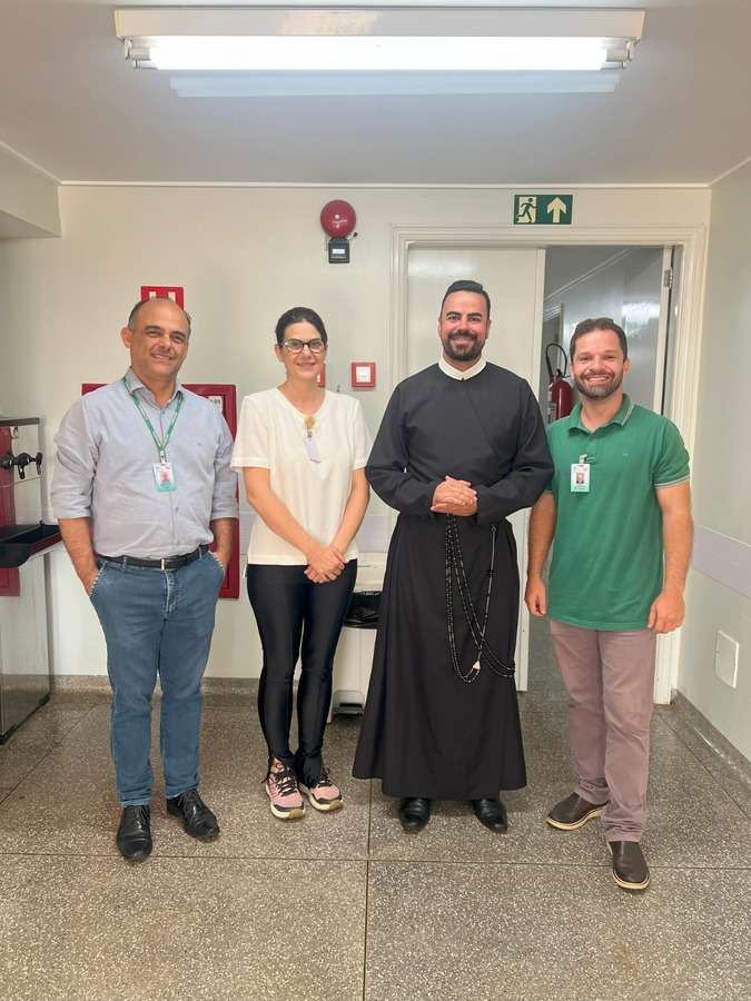 Durante a visita, o Padre Matheus percorreu todos os setores da instituição, levando palavras de fé, esperança e conforto aos profissionais, além de realizar um momento especial de oração e bênção, reforçando valores como união, cuidado e compromisso com o próximo.